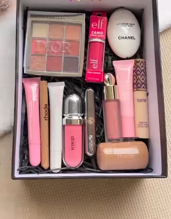 An all-in-one makeup essentials gift box featuring a curated selection of beauty products, including lip colors, glosses, base makeup, eye products, and a compact palette. Neatly arranged in a premium box, this set is perfect for beginners and beauty lovers alike. Ideal for gifting or building a versatile everyday makeup collection with a variety of shades and finishes.