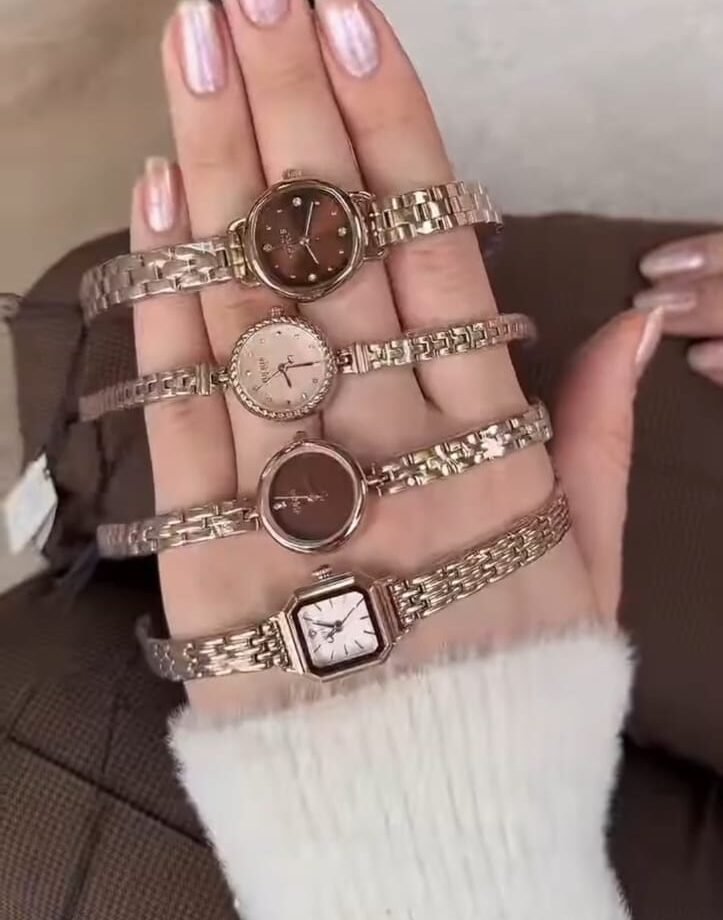 A stylish assortment of slim bracelet watches featuring delicate metal straps and compact dials in coordinated neutral tones. Designed with a refined, jewelry-like finish, these watches blend seamlessly with both casual and dressy looks. Perfect for layering or choosing a different style each day, this collection offers timeless elegance with a modern minimalist touch.
